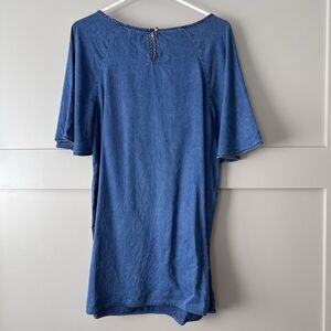 Cooperative Chambray Denim Mini Dress Women Medium Flutter Sleeve Pocket Scoop Neck