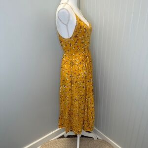 Cooperative Cindy Mustard Yellow Floral Midi Dress with Open Back size:4