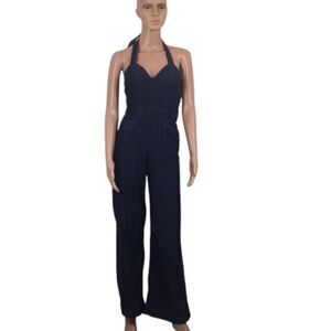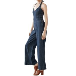 Cooperative Harley Chambray Denim Halter Wide Leg Jumpsuit | Size 2