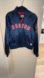 Stylish blue satin jacket with Boston Red Sox logo. Features red and white accents.