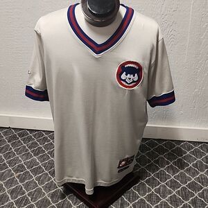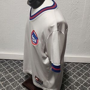 Rare! Hard to find this color scheme. Most of these were sold in Cubbie blue. Its in great condition for its age, I've owned this for about 20 years and feel it's time to pass it on. Tiny stain on the front but hard to see, I did attach a photo of the spot. The lettering and numbers are stitched on. Awesome add to any Collection. Size is XL