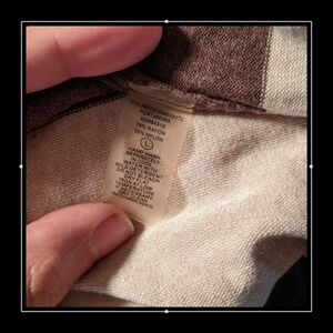 Brown and beige striped open front knit hooded cardigan and brown short sleeve blouse. Coordinated set, gently used.