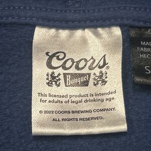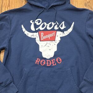 Coors Banquet Rodeo Hoodie Mens Small Sweatshirt Bull Horns Logo Blue Fleece Lined