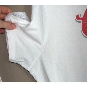 Basic white Tshirt with Coors Light logo on front, cotton poly, short sleeve, crew, relaxed, no stains, no pit stains