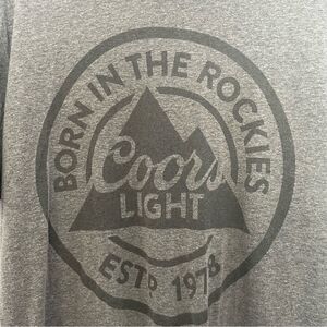 Gray short sleeve t-shirt with a dark gray Coors Light beer graphic on the front. Shirt brand is Next Level, tagged a size XL.