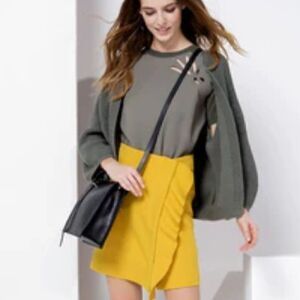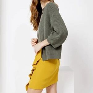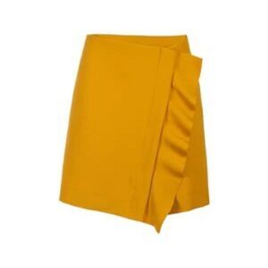 Cop .Copine Baryta Mustard Ruffle Wrap Mini Skirt. Size Medium (38) Excellent pre-owned condition. The timeless elegance of an A-line skirt only made richer by the originality of a ruffled zip that makes it look like a wrap skirt = the strongest piece of the season. Still on the website. Ships from a smoke and pet free home.