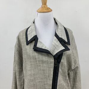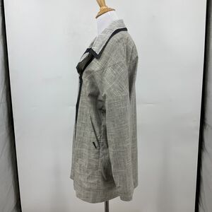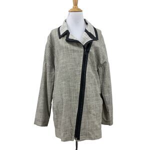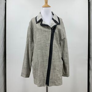 COP COPINE CHATELET JACKET WOMEN 38 GRAY LINEN BLEND OVERSIZED FAUX LEATHER TRIM