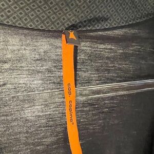 Contrast Detailing: Gray patterned trim along the neckline and front edge for a sophisticated, contrasting finish.