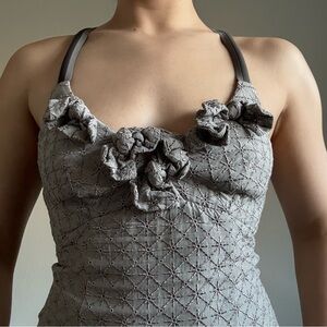 Rare Vintage Whimsical Cop Copine grey mini dress with unique floral detailing! This dress gives dark fairy core vibes🖤