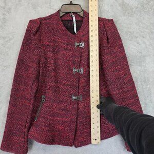 Cop Copine Jacket Womens Size 40 Red Wool Blend Rosaura Toggle Zip Pockets
