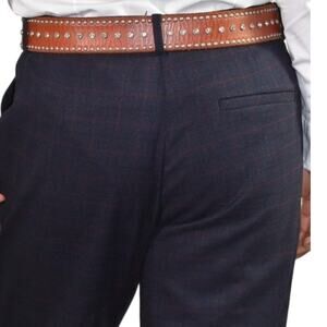 Cop Copine Ouaf Pant Blue Cropped Trouser Check Plaid Cuffed Wide Leg Size 40 10