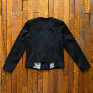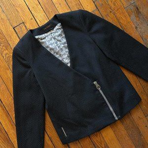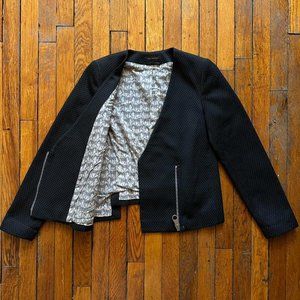 Cop. Copine Women's Black Zebra Print Lined Zipper Close Cropped Blazer Light Jacket.