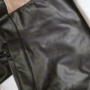 This costume features a snap front mesh crop top adorned with police patches and faux leather contrast.