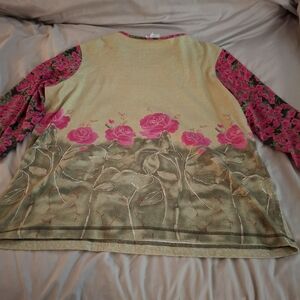 Relax in style with this comfortable pink and green loungewear set by Copa Cabana. Perfect for cozy days at home. top size XL. pit to pit measures 23 inches. length 27 inches. Bottoms size Large. waist side to side measures 14 inches with stretch. Length 37 inches. inseam 24 inches.
