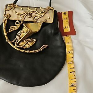 Vintage Copa Collection's one of a kind eye-catching black leather and brass crossbody handbag. This is in great previously owned condition.