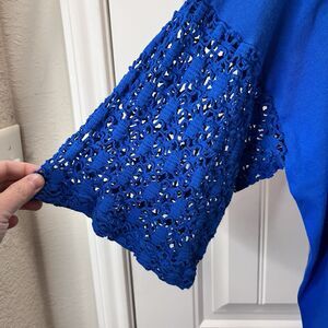 CopaCabana Blue Short Crochet Sleeves Tunic Top Beachy Coastal Womens Size 2/3XL