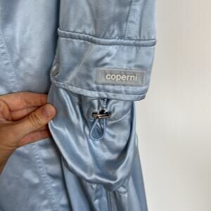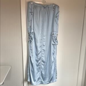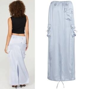 Coperni Cargo Satin Lightweight Maxi Skirt Size 8 Powder Blue Sheen