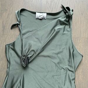 Coperni Cutout Sleeveless Asymmetrical Dress Gown Green Rose Flower - LARGE