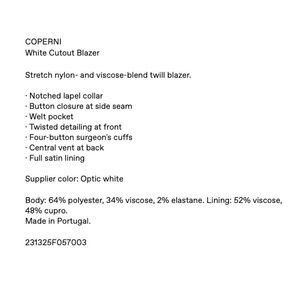 Coperni White Cut-Out Blazer New With Tags US6/Medium FR38