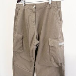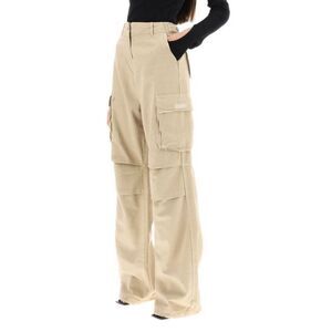 Coperni cargo pants made of pure cotton canvas with a wide-leg silhouette. Adjustable waist with side buttoned straps, slanted side pockets, gusseted back pockets, concealed zipper and monogram button fly. Finished with distressed details, lettering logo patch on the cargo pocket and contrasting patch with embossed monogram at back.