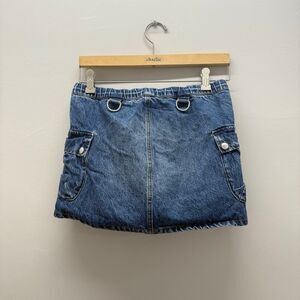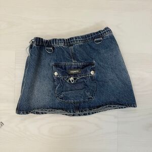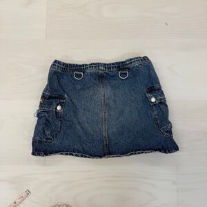 Blue (100% Cotton). Skirt. Pull on. 11 1/2" from waist to hemline.