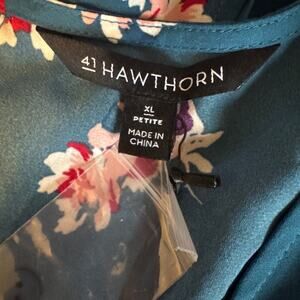 41 Hawthorn Teal Floral Pleated Short Sleeve Blouse Women’s XL Petite NWT