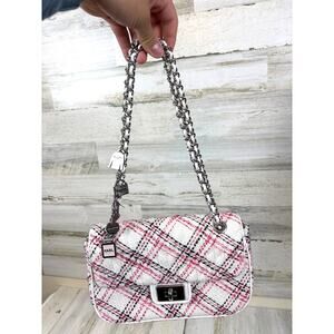 women’s Karl Lagerfeld shoulder bag pink plaid Lafayette designer purse chic modern