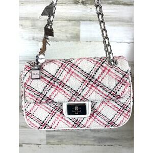 Karl Lagerfeld women’s bag Lafayette plaid pink Charmed shoulder handbag NEW