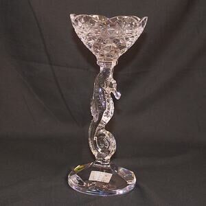 Copied - Waterford Crystal Seahorse Pillar Candlestick Signed By Artist