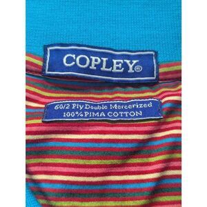 The Copley Men's Casablanca Golf Polo Shirt features a vibrant multi-color striped pattern, size XL. Made from soft, breathable Pima cotton, it ensures all-day comfort on and off the course. This classic polo design combines style and functionality for a polished, sporty look. Perfect for golf enthusiasts or casual outings.