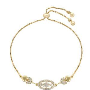 Copper 18K Gold Plated Inlay Geometric Heart Shape Artificial Gemstones Bracelet