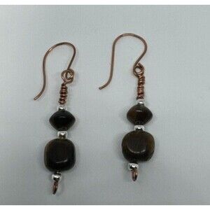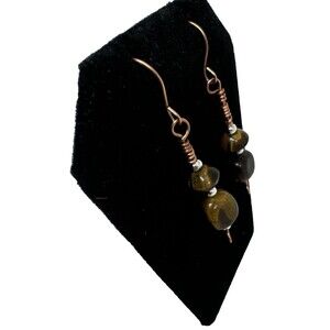 Handmade by me Southern Sista, these bare copper dangle earrings with Tiger's Eye gemstones and silver colored spacer beads, perfect for any occasion. These are hand crafted even the ear hooks, they are also wrapped at the top.