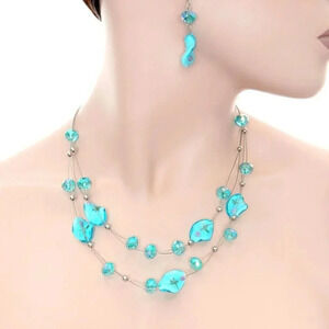 This is a Women's Fashion Beautiful Copper Blue Murano Glass and Blue beaded Necklace & matching Earring Set.