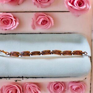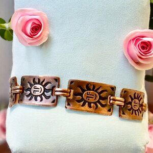 Copper Bracelet Vintage Sun Face Rectangular Links Southwestern Boho