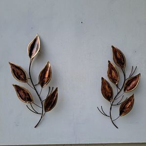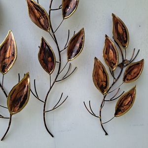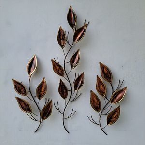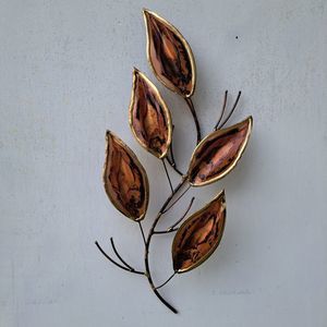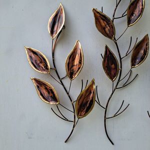 Copper & Brass Seven Leaves on a Branch & 2 Five Leaf Branches Wall Sculpture