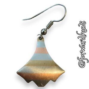 Elevate your accessory game with these exquisite handcrafted dangle earrings, showcasing a striking blend of copper, brass, and silver tones. The tricolored design adds a touch of sophistication and uniqueness to these earrings, making them a standout addition to your collection.