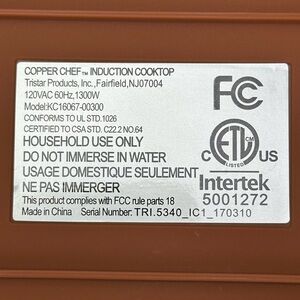 Copper Chef Induction Cooktop With Owner’s Manual KC16067-00300