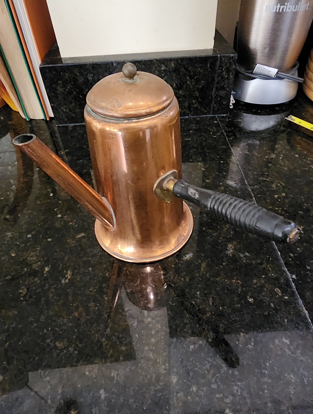 Vintage coppercraft Turkish Copper and Brass Coffee And Tea Pot with wood handle. I Used for decorative purposes but am trying to downsize.