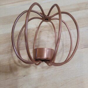 Copper Colored Pumpkin Shaped Candle Holder Approx. 5" x 5" . It can hold a 1.5" H, 1.25" diameter candle.Add to a bundle with any other item and I'll send a discount.