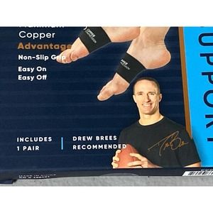 Brand new in box. Drew Brees (football player) recommended. These arch supports are copper infused, provide soothing compression and support. They are anti-microbial, anti-odor, and moisture wicking. Please see pictures for details.