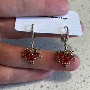 Copper Cubic Zirconia Maple Leaf Dangle Earrings fall vibes autumn colors