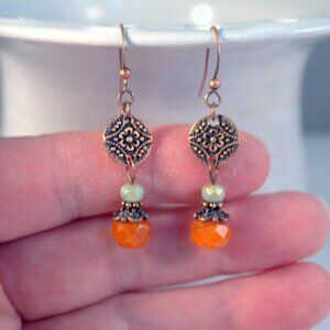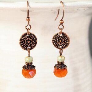 Copper Czech Glass Drop Earrings Boho Chic Dangle Pierced or Clip-on Earrings