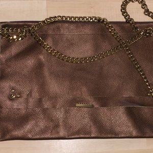 over the shoulder bag/ gold strap, custom leather design/ one of a kind/ versatile wear.