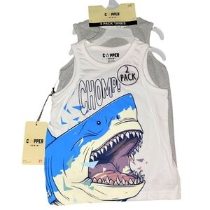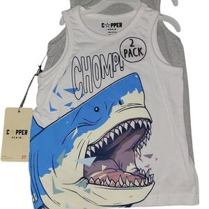 Copper Denim Size 3T 2 Pack Tank Tops Shark Graphic & Dinosaur Skull Graphic