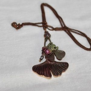 Copper & Gold Tone Ginkgo Leaf w/ Bug, Beads and a Bit of Sparkle Necklace