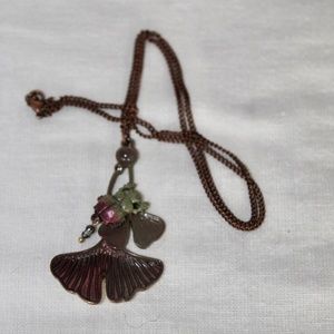 Copper and Gold Tone Ginkgo Leaf with Bug, Beads and a Bit of Sparkle Pendant on Copper Chain.