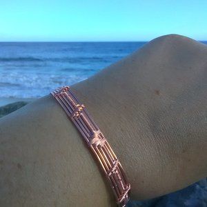 This copper bracelet is woven into the form of a human heart beat. It fits sizes 8 to 12 but I can make custom sizes as well.