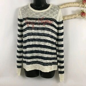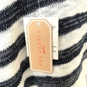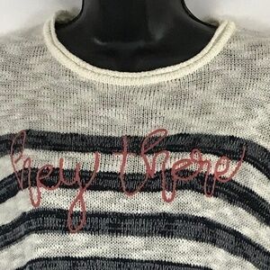 Copper Key long sleeve black and white stripe soft loosely knit sweater saying, "Hey There." NWT...size medium...no flaws noted...see photos for care details.
