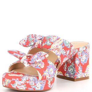 Copper Key Blooming Floral Print Double Bow Platform Sandals - 8.5