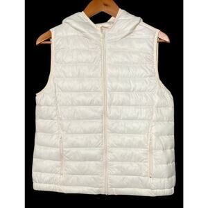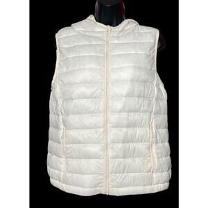 Copper Key Cream Vest Puff Quilted Hooded Jacket Women Size Large Zip Front